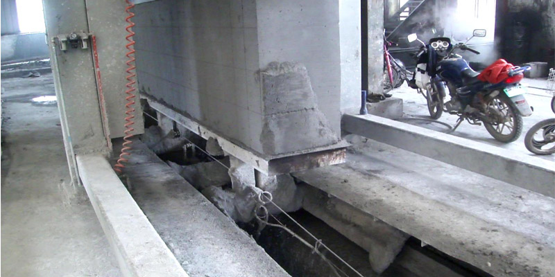 目前最流行的切割方式是機械切割,這種切割方式可以實現(xiàn)6面切割,切割產(chǎn)量大,廢料全部自動流入回收水槽,最重要的優(yōu)點是2-3人就可以操作,省人工,切割精度高,適合年產(chǎn)5-20萬立方的加氣混凝土生產(chǎn)線。缺點是前期的投資比手動切割要大,且需要配置回收水槽和廢料攪拌機。機械切割在使用時間長后會出現(xiàn)傳動不同步,保養(yǎng)不好,切割時會出現(xiàn)雙眼皮和崩邊現(xiàn)象,而手動切割卻沒有這樣的情況發(fā)生。