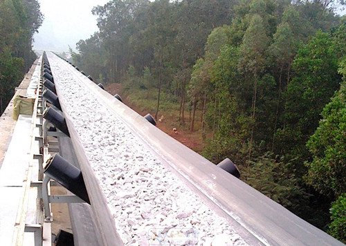 下面這張是皮帶輸送機(jī)現(xiàn)場圖片。采用的是品字形托輥組,以輸送礦物原料為主。